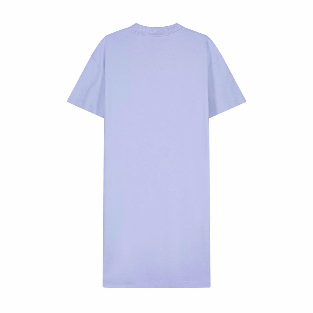 A playful take on a streetwear staple, this dress transforms the iconic t-shirt shape into a loose-fitting mini dress. Falling with a straight hem it’s outline creates the perfect boxy silhouette. The millennial purple colourway is highlighted at the neckline with tonal branding knitted directly into the ribbed crewneck.