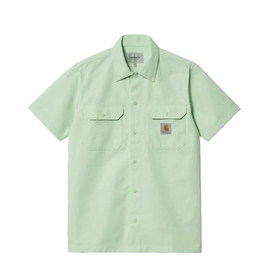 Logo Carhartt ricamato su etichetta cucita sul taschino sinistro e al fondo dell’abbottonatura