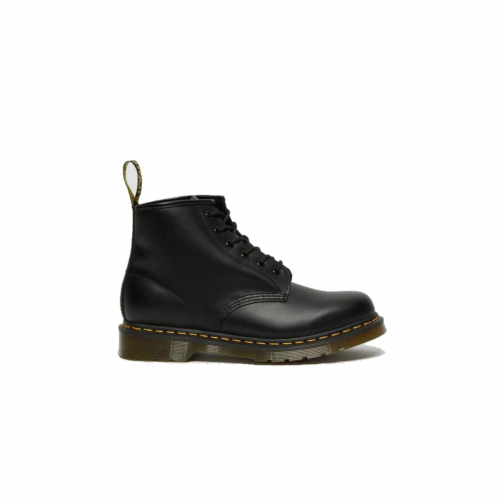 Con due occhielli in meno rispetto all’iconica silhouette 1460, lo stivaletto 101 conserva tutto il nostro inconfondibile DNA. Disponibile ora anche con cuciture gialle, è immediatamente riconoscibile come un classico Docs, poggia su una robusta suola a cuscinetto ed è rifinito con una fettuccia posteriore con logo AirWair.