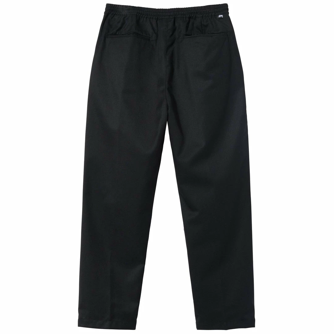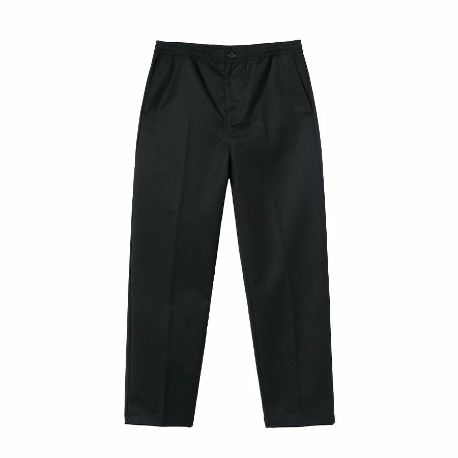 Pantaloni Bryan con elastico in vita, due tasche laterali oblique e due tasche a filetto divise sul retro. Chiusura a bottone. Poly coulisse – cintura interna