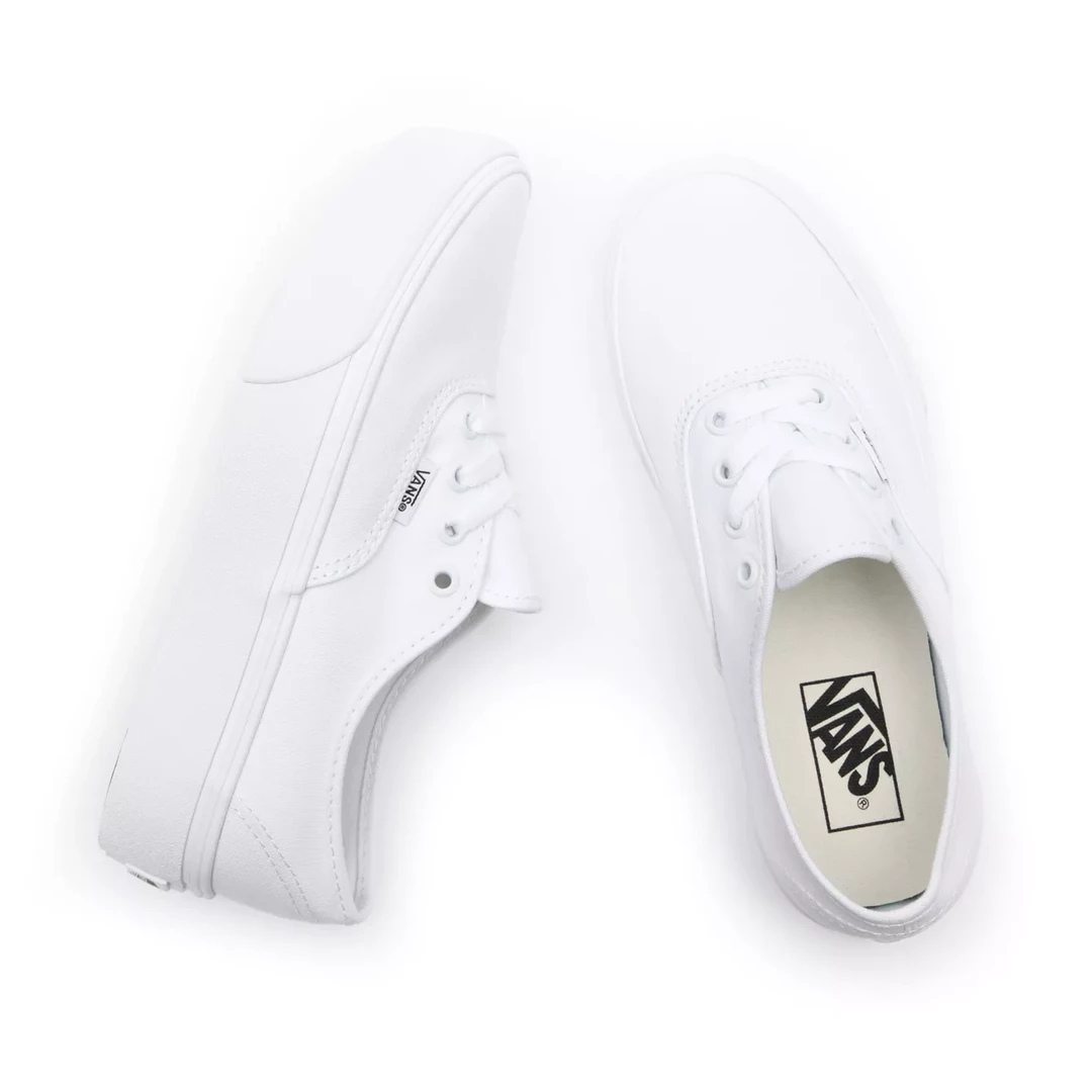 Le Authentic Platform 2.0 combinano l’originale modello low-top di Vans, ormai un’icona di stile, con una robusta tomaia in tela, occhielli in metallo, plateau e l’originale suola waffle in gomma.