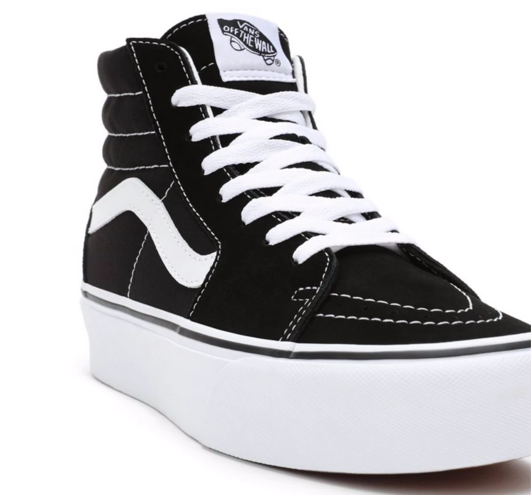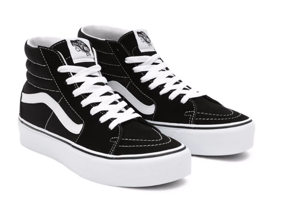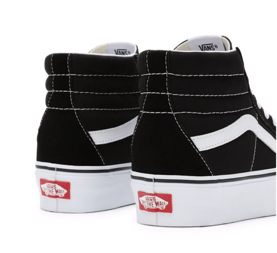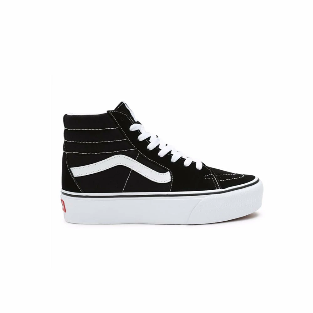 Le Vans Sk8-Hi Platform 2.0, stringate e dal profilo alto, presentano un collo imbottito per un comfort extra, e un’originale suola waffle con plateau in gomma che garantisce alla scarpa un’aderenza ottimale.